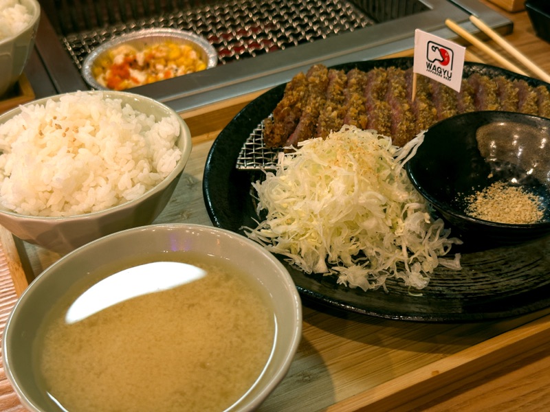 Gyukatsu. Daging yang disalut bread crumbs. Not bad.